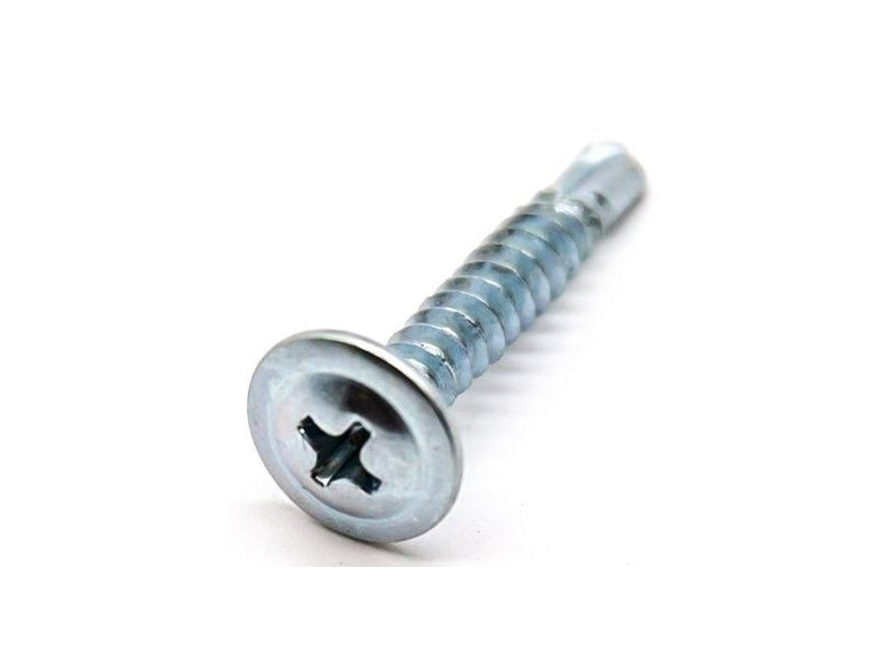 Nagy fejátmérőjű, önfúró lemezcsavar, amelyet burkolólemezek, polikarbonát, bitumenlemez és hasonló vékonyabb fedőanyagok rögzítésére terveztek. A tányérszerű fej megakadályozza a lemez átszakadását és a csavar besüllyedését — különösen fontos kültéri, terhelésnek kitett felületeken.